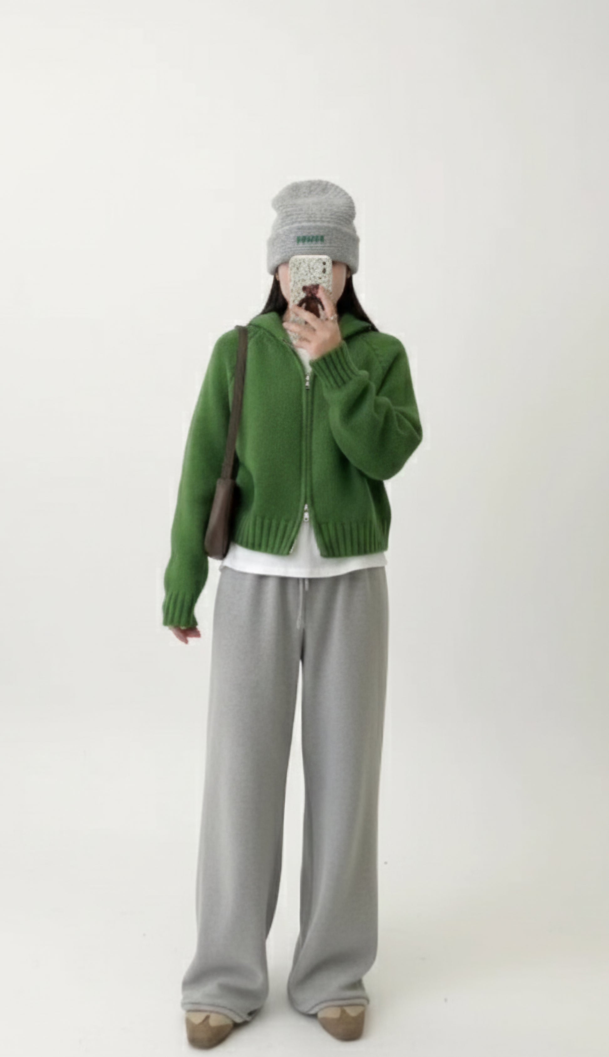 Hooded knitted cardigan double zipper jacket